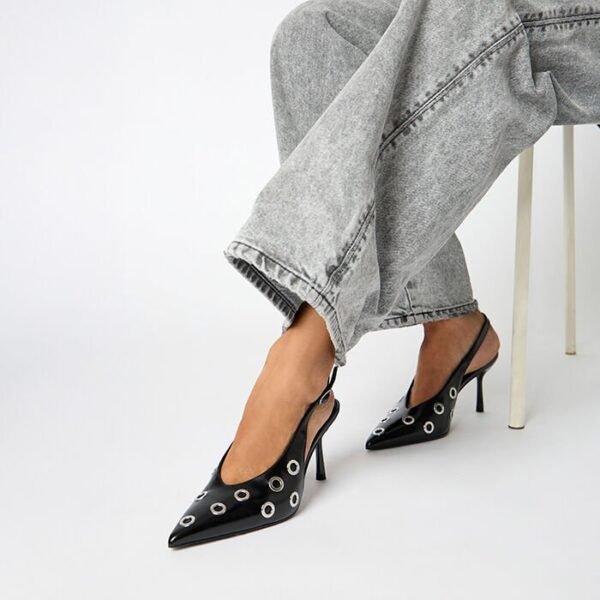 La silueta abierta en el talón añade ligereza y feminidad, mientras que el tacón de altura media estiliza la figura garantizando comodidad y estabilidad durante todo el día. Un modelo versátil, perfecto para la oficina, eventos especiales o cenas elegantes.